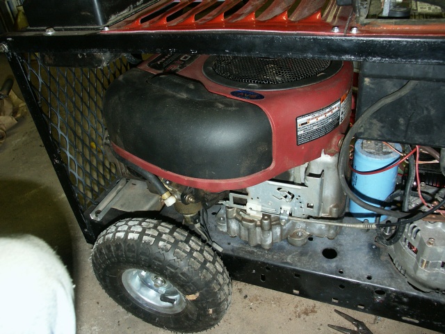 I found a deal on a broken riding mower. Simple fix (shift linkage). I plan on selling it, but it had this nice 15HP OHV engine. I decided I wanted it for the welder ;). Put the 12HP in the riding mower; plenty for a 38" deck.