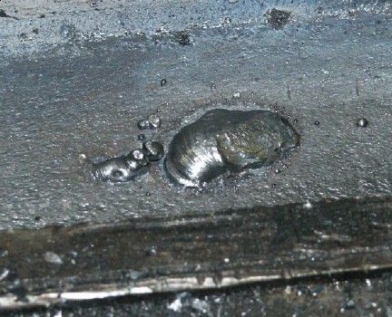 | 5/64" 6013 rod, DCEN, 1/8" steel, OCV 36V, too much current caused spatter. | 3/32" 7018 rod. Tried higher OCV (45V.). Still current a bit high. The top left was DCEP and is cleaner. Bottom trace had too much current still and has big blob of weld hanging down. Need to adjust current range a bit.. |